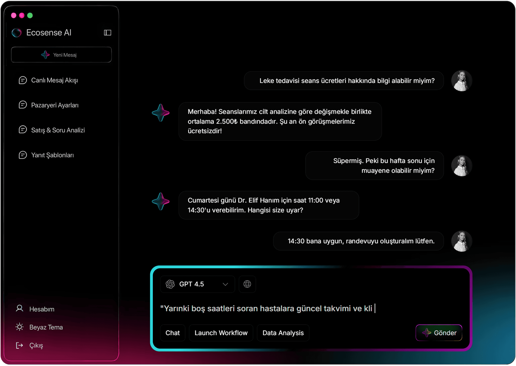 Hasta sorularını kaçırmadan, randevuya dönüştüren akıllı asistan.